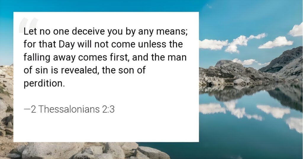 “Let no one deceive you by any means; for that Day will not come unless the falling away comes first, and the man of sin is revealed, the son of perdition, who opposes and exalts himself above all that is called God or that is worshiped, so that he sits as God in the temple of God, showing himself that he is God.”